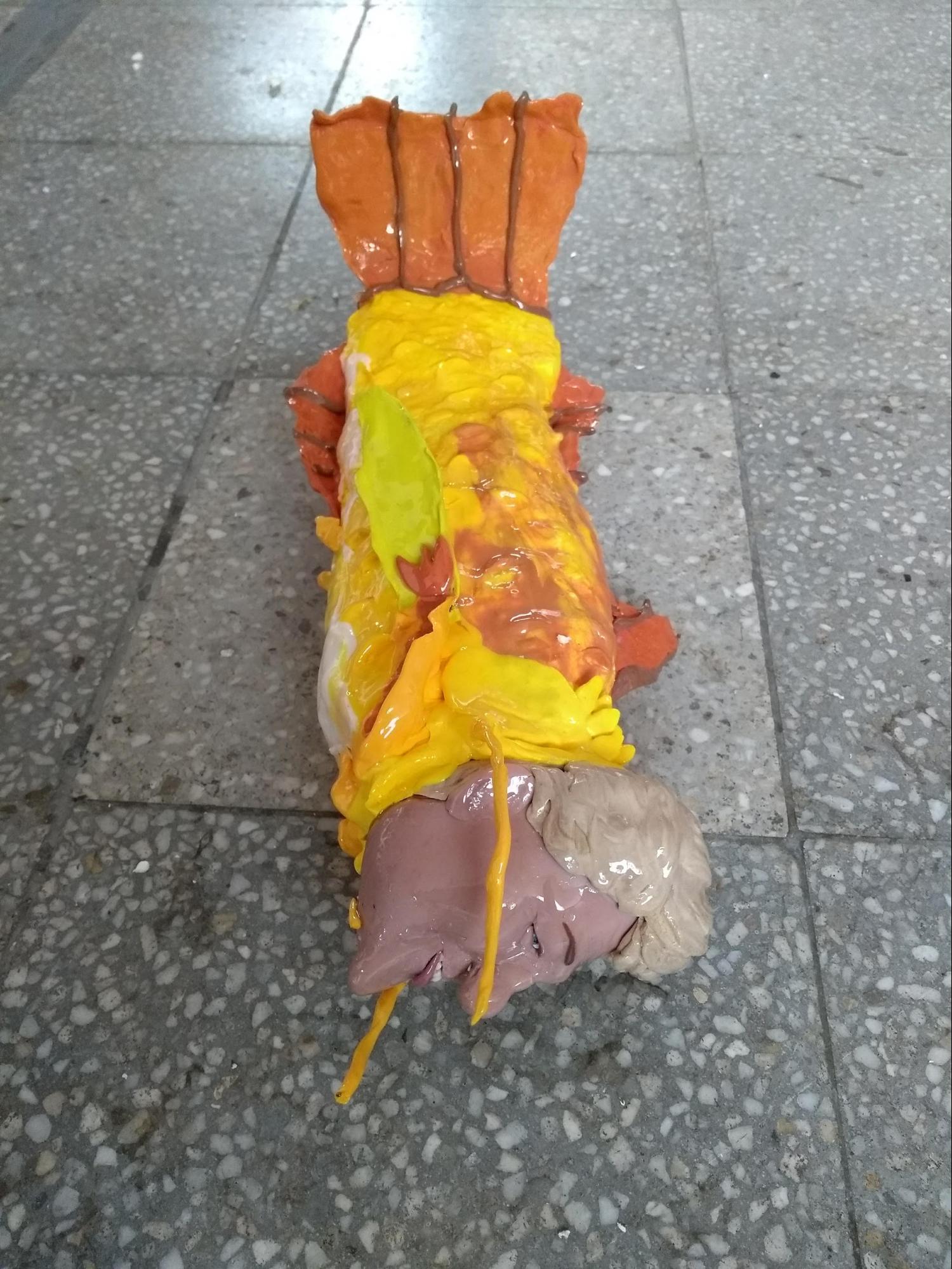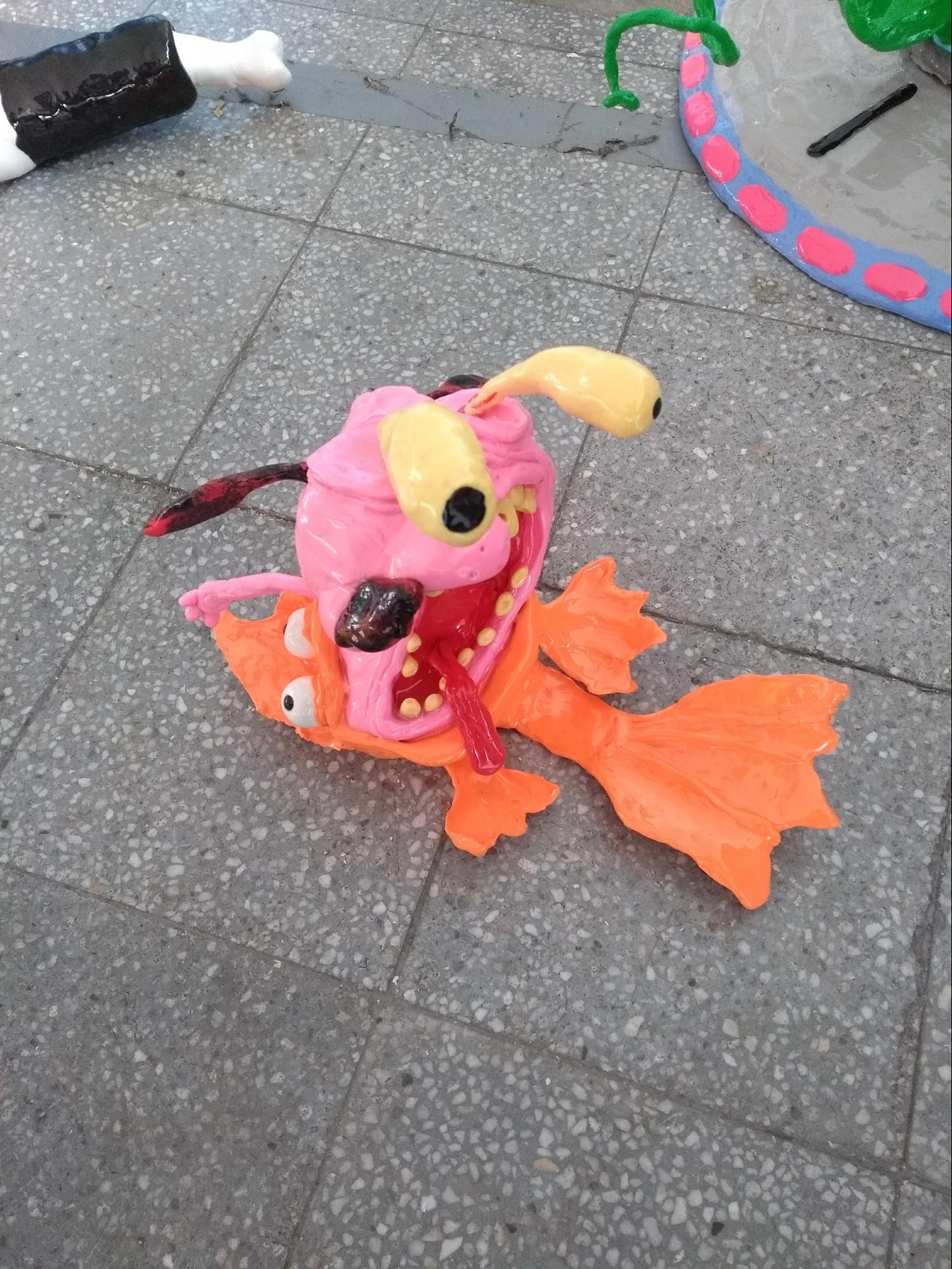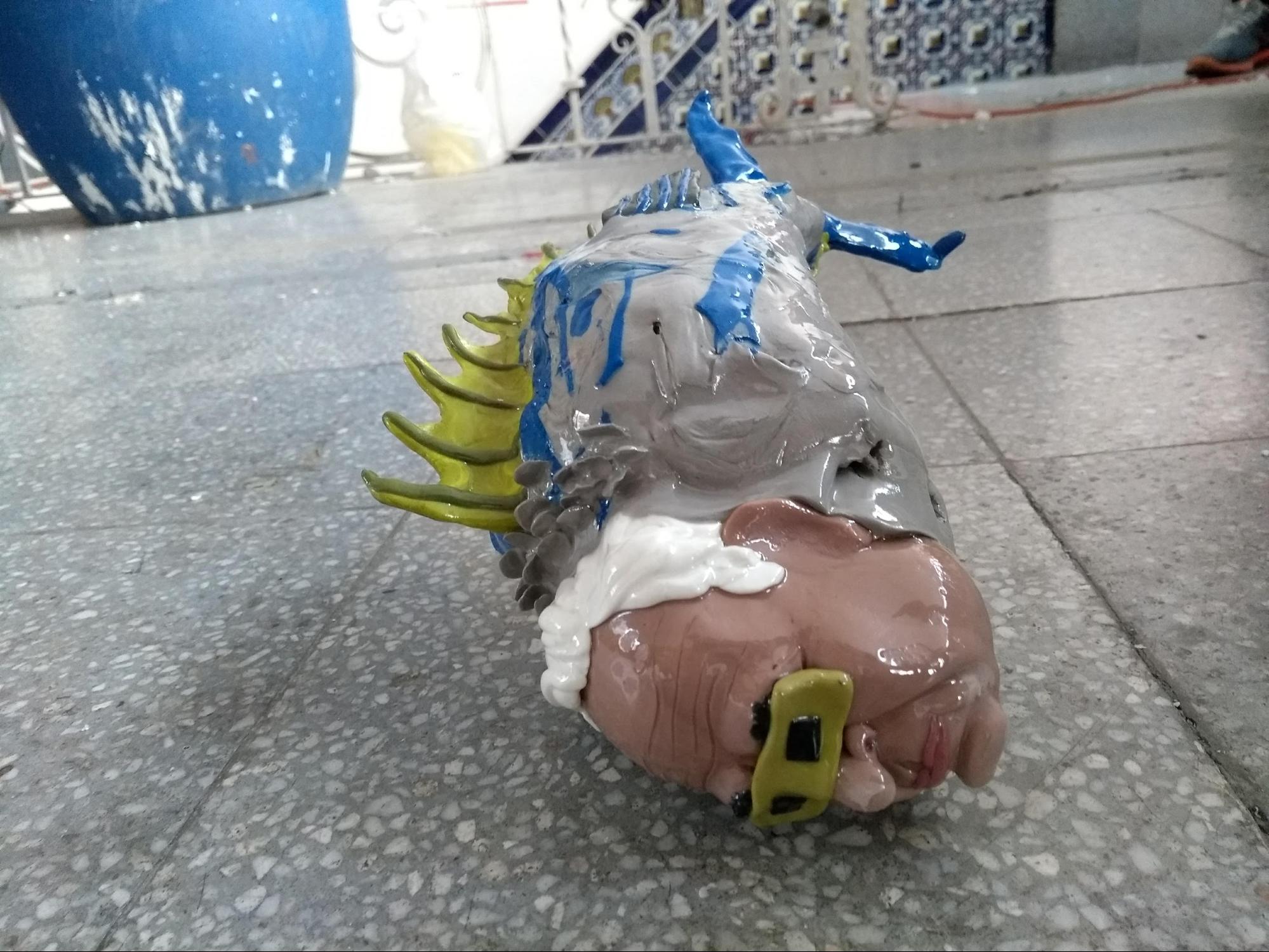 La instalación en Kurimanzutto, previamente presentada en el Palais de Tokyo en París, está conformada por una réplica en fibra de vidrio de una orca de siete metros —una medida similar al verdadero Keiko— que contiene una serie de esculturas hechas con foamy moldeable. Éstas a su vez escenifican subconjuntos que corresponden a los diez años que la ballena pasó en México. Mediante estos objetos, la NAFTAlgia aparece como una serie de desviaciones de la cultura popular del periodo que transformó a Keiko en Willy, producto de exportación global para satisfacer las demandas de “libertad” propias a la era del final de las ideologías.